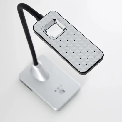 Mit dem integrierten Touchdimmer kann die Helligkeit in vordefinierten Stufen anpasst werden. Die Tischleuchte beinhaltet ein Zuleitungskabel von etwa 1,3 Metern in der Länge.