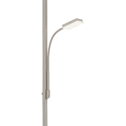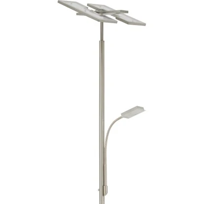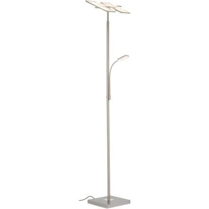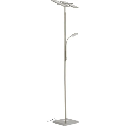 Der Briloner LED-Deckenfluter Floor überzeugt durch modernes Design und hohe Funktionalität. Er ist aus Metall in matter Nickel Optik sowie Kunststoff gefertigt und verfügt über einen zusätzlichen Lesearm. Besonders vorteilhaft ist der 3 geteilte eckige Fluterkopf. Jedes Element lässt sich individuell schwenken. Je nach Ausrichtung können Sie immer wieder neue leuchtende Akzente in Ihren Wohnräumen setzen, denn im Vergleich zu den üblichen Deckenflutern, die das Licht nur starr nach oben abgeben, erreichen Sie mit dem eleganten Briloner LED-Deckenfluter ein Höchstmaß an flexibler Innenraumbeleuchtung. Er leuchtet Ihr Wohnzimmer mit kraftvollen 2.000 Lumen aus. Zudem ist er über einen Touchdimmer stufenlos dimmbar. Die flexible Leseleuchte verfügt über einen Touchschalter zum Ein- bzw. Ausschalten.