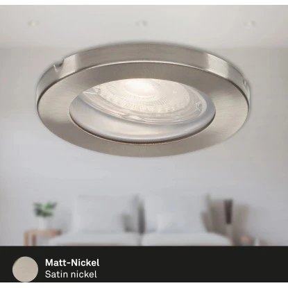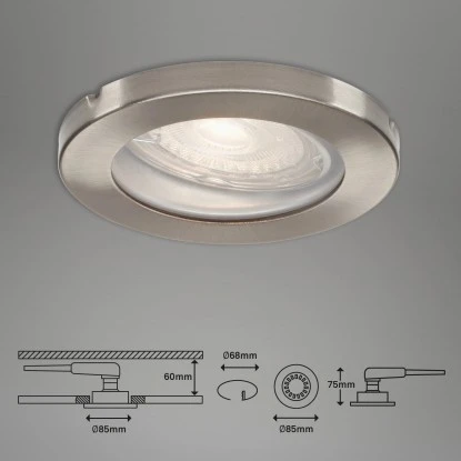 Die moderne und energieeffiziente LED-Einbauleuchte im praktischen 3er-Set ist individuell im Innenbereich einsetzbar. Die Leuchte ist staub- und strahlwassergeschützt (IP65) und können damit individuell im Bad eingesetzt werden. Der runde, schwenkbare Spot mit einem Durchmesser von 85 mm (Einbaumaß: 68 mm) in der Farbe Matt-Nickel bietet Ihnen die Möglichkeit, Ihr Bad in einem warmweißen (3.000 K) Licht optimal auszuleuchten.
