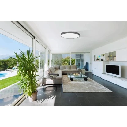 Die Deckenleuchte Pasteri ist aus einem runden, grauen Textil-Schirm aus Leinen und einem weißen Diffusor gefertigt. Die Deckenlampe im zeitlosen Design fügt sich nahtlos in minimalistische und moderne Einrichtungen ein. Mit einem Durchmesser von 76 cm bietet sie eine wohnliche Beleuchtung für jeden Raum – egal ob im Wohnzimmer, Schlafzimmer, Flur oder Esszimmer. Die Leuchtmittel sind nicht im Lieferumfang enthalten. Geeignet ist die Leuchte für jedes Leuchtmittel mit E27-Sockel.
