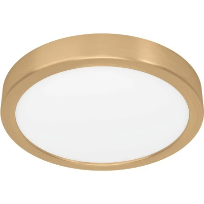Die LED Aufbauleuchte Fueva 5 aus Metall in Messing-Gebürstet und der sehr geringen Aufbauhöhe von nur 28 mm fügt sich in nahzu jeden Wohntrend ein. Die integrierten LEDs spenden angenehmes warmweißes Licht und sind durch den weißen Diffusor nicht zu sehen. Aufgrund der geringen Aufbauhöhe kann die Deckenleuchte ebenso problemlos als Wandleuchte eingesetzt werden. Die hochwertige Leuchte ohne sichtbare Verschraubungen am Gehäuse lässt sich dank der speziellen Deckenhalterung besonders einfach montieren. Das zeitlose Design der Aufbaulampe und der Durchmesser von 210 mm ermöglicht den Einsatz in jedem Raum – egal ob im Wohnzimmer, Schlafzimmer, Flur oder Esszimmer.