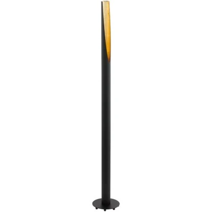 Die Stehleuchte von Eglo überzeugt in einem modernen Design. Gefertigt ist Sie aus schwarzem Stahl und hat goldene Applikationen. Der praktische Fußschalter sorgt für ein einfaches an- und ausschalten.