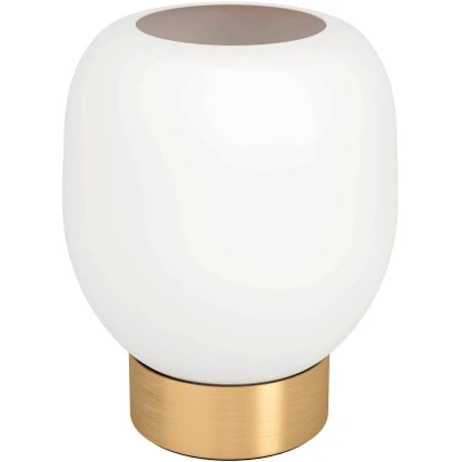 Die Eglo Tischleuchte Manzanares ist eine 1-flammige Leuchte in Gold. Der Metall-Fuß der Tischleuchte ist rund und in Messing-gebürstet gehalten. Der Lampenschirm besteht aus weißem Glas und hat eine Opal-matte Oberfläche. Ein Schalter am Kabel ermöglicht ein bequemes Ein- und Ausschalten der Leuchte.
