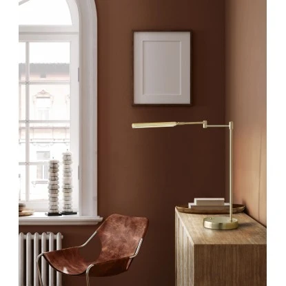 Der Fuß der Leuchte und auch das Gestell sind aus Metall in messingfarben gefertigt. Dazu bildet die satinierte Acrylblende einen schönen Kontrast. Das zeitlose Design dieser Tischleuchte können Sie mit nahezu jeder Einrichtung kombinieren. Darüber hinaus verzichtet die Leuchte auf alle überflüssigen Details. Wenn der Tag zuneige geht und allmählich Ruhe einkehrt, dann können Sie es sich mit dieser Tischlampe so richtig gemütlich machen in Ihrem Zuhause. Sie bringt sprichwörtlich jeden Raum zum Strahlen.
