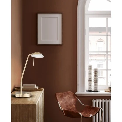 Die messingfarben matte Oberfläche mit einem Alabasterfarbenen Glas wirkt modern. Mit einer Ausladung von 40 cm und einer Höhe von 60 cm ist dieser Artikel für Flure oder Wohn- und Essbereichen bestens geeignet. Schönes Licht ist garantiert. Durch einen Sensordimmer direkt an der Leuchte ist stufenloses Dimmen für die Gemütlichkeit gegeben.