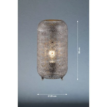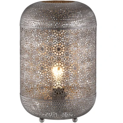 Die dekorative Tischleuchte Velvet sorgt mit ihrem reich verzierten Lampenschirm für eine stimmige Beleuchtung in Ihren Räumen. Die Lampe ist in antik Silberfarben designt und lässt sich somit in zahlreiche Farbkonzepte integrieren. Sie ist sowohl im Wohn- als auch im Schlafzimmer ein dekorativer Blickfang und schafft ein stimmungsvolles Ambiente.