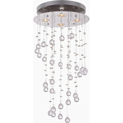 Mit dieser kunstvollen runden Deckenlampe aus Chrom werden leuchtend schöne Akzente gesetzt. Eingesetzt z.B. im Wohnzimmer kann diese Leuchte mit herabhängenden klaren Kristallen zu einer eindrucksvollen Umgebung beitragen. Diese Lampe verfügt über einen Durchmesser von 32 cm und ist mit 4 GU10 Fassungen ausgestattet, welche schon 1680 Lumen starke LED-Leuchtmittel inkludieren. Mit weiteren Lampen dieser Serie können Sie das Bild in Ihren Räumen komplettieren.