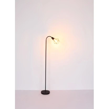Diese schöne Stehleuchte überzeugt durch ihr tolles Design und wird zum Mittelpunkt Ihrer Räume. Aus einem schwarz matten Sockel verläuft einen 1,7m lange Metallstange senkrecht nach oben an der sich ein Metallschirm mit einer E27 Fassung befindet. Diese überlässt Ihnen die Möglichkeit selbst, bis zu einer maximalen Leistung von 60 Watt, über das Leuchtmittel zu bestimmen.