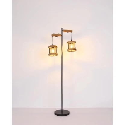 Diese zeitlose Stehleuchte begeistert durch ihr schönes Design und wird zum Mittelpunkt Ihres Wohnbereiches. Die Leuchte besteht aus 2xE27 Fassungen und jeweils einem Schirm mit Holzrahmen und einem Metallgeflecht welche an schwarzen Kabeln hängen und an der 1,5m hohen schwarz matten Metallstange höhenverstellbar sind. Mittels der E27 Fassungen können Sie, bis zu einer maximalen Leistung von 60 Watt, selbst über Ihr Leuchtmittel bestimmen.
