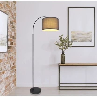 Diese bezaubernde Stehleuchte begeistert durch ihr schönes Design. Aus einem schwarz matten Sockel ragt eine knapp 1,6m lange Metallstange an der sich eine E27 Fassung mit einem Schirm in der Farbe Anthrazit befindet. An der Umbiegungsstelle der Metallstange können Sie die Leuchte frei verdrehen. Die E27 Fassung ermöglicht Ihnen Leuchtmittel Ihrer Wahl, ist zu einer maximalen Leistung von 60 Watt, zu benutzen.
