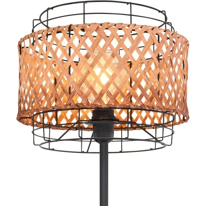 Die Stehlampe aus der Gina-Serie von Globo mit einem Durchmesser von 30 cm ist eine stilvolle Bereicherung für Ihre Innenräume. Die 151 cm große Stehleuchte besteht aus einem runden, schwarzen Metallsockel, an dem ein schwarzer Metallstab fixiert ist. dieser verfügt über einen schwarzen Metallgitterschirm mit einem Ring aus verflochtenem Bambus, welcher mit einem E27-Leuchtmittel Ihrer Wahl bestückt werden kann. Dadurch haben Sie die Möglichkeit, Lichtfarbe und Helligkeit individuell zu bestimmen. Außerdem ist die Stehlampe mit einem inkludierten Schalter versehen, mit dem sie bequem ein- und ausgeschaltet werden kann. Durch weitere Modelle der gleichen Serie können Sie in Ihren vier Wänden für ein gemütliches Ambiente sorgen und das Gesamtbild komplettieren.