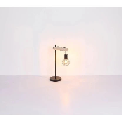 Diese tolle Tischleuchte begeistert durch schönes Design. Aus einem runden Sockel ragt eine 55 cm lange schwarze Metallstange an der sich ein höhenverstellbarer Holzbalken mit einer E27 Fassung und einen Schirm aus Metallgeflechten befindet. Die E27 Fassung ermöglicht Ihnen bis zu einer maximalen Leistung von 60 Watt selbst über Lichtfarbe und Helligkeit zu bestimmen. Aufgrund von Langlebigkeit und Stromersparnis empfehlen wir LED Leuchtmittel.