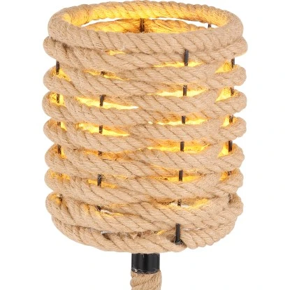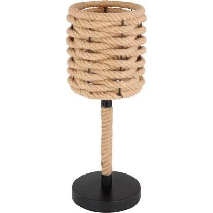 Die naturverbundene Tischleuchte der Serie Halia von Globo beeindruckt durch Ihre Materialkombination aus Metall und Hanfseil. Aus einem runden schwarz matten Metallsockel ragt der Ständer der Leuchte aus hauptsächlich Hanfseil und mündet an einer E27-Fassung welche mit einem Leuchtmittel Ihrer Wahl bis zu einer maximalen Leistung von 40 Watt bestückt werden kann. Bedeckt wird die E27-Fassung von einem wunderschönen geflochtenen Schirm aus Hanfseil und gibt der Leuchte den nötigen Touch zur Natur.