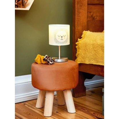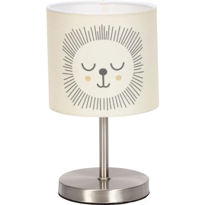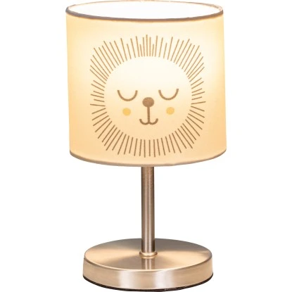 Durch ihr attraktives Löwenmuster in Hellbraun und Kupfer ist die Lampe ein trendiger Blickfang in der Kinderzimmereinrichtung. Ihre Form ist klassisch rund gehalten. Die Gesamtmaße betragen Ø 13 cm x 22 cm. Ausgestattet ist die Tischleuchte mit einer E14 Fassung. Das passende Leuchtmittel mit einer Leistung von 40 W ist separat erhältlich.