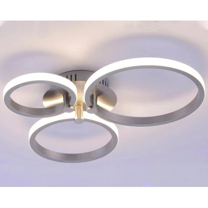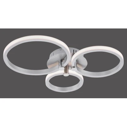 Die futuristische LED-Deckenleuchte Johanna erhellt Ihren Wohnbereich formschön. Sie verfügt über 3 verschieden große Leuchtringe. Die Ringe sind jeweils mit einem festverbauten LED-Leuchtmittel bestückt die zusammen auf eine Gesamtlumenzahl von 2.400 lm kommen. Ihre Maße betragen (L x B): 49 cm x 40 cm, mit einer Abhängung von 8,5 cm.