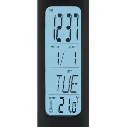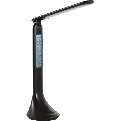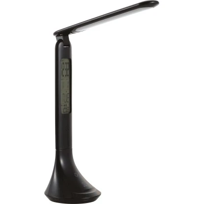 Die moderne LED-Tischleuchte aus der Serie Cologni bietet Ihnen neben einer hellen Beleuchtung viele Extras wie Kalender-, Temperatur- und Alarmfunktion. Damit eignet sich die 4-in-1-Leuchte vielseitig zur Verwendung im Büro oder im Schlafzimmer. Gefertigt ist ihr Gehäuse aus langlebigem und leichtem Kunststoff in der neutralen Farbe Schwarz. Ihr extravagantes Design mit dem flachen, einstellbaren Lampenschirm passt in viele Einrichtungsstile.