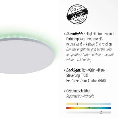 | Lichtfarbe | Einstellbar Warm- bis Tageslichtweiß + RGB |