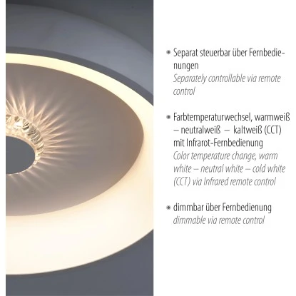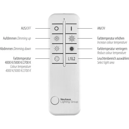 Die mitgelieferte Funkfernbedienung macht die Bedienung der Leuchte besonders komfortabel. Steuern Sie die Helligkeit und die Lichtfarbe bequem aus der Ferne, ohne dass Sie sich von Ihrem Platz bewegen müssen. Machen Sie es sich gemütlich und genießen Sie die kabellose Kontrolle über Ihre Beleuchtung.