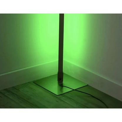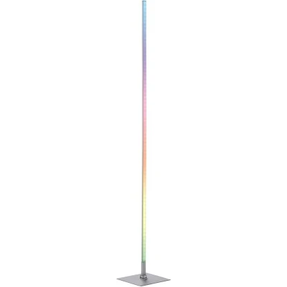 Wer auf der Suche nach einer stimmungsvollen Beleuchtung ist, der findet mit der Leuchten Direkt LED-Stehleuchte Henry Stahl RGB 2700-5000 K einen absoluten Eyecatcher. Im ausgeschalteten Zustand ist diese eher unauffällig, denn sie entfaltet erst im eingeschalteten Zustand ihre volle Wirkung. Die Stehlampe leuchtet sowohl in den statischen RGB-Farben als auch in den dynamischen RGB-Dreamcolors, welche mithilfe der mitgelieferten Infrarot-Fernbedienung individuell eingestellt werden können. Es sind verschiedene Wiedergabemodi möglich, wie beispielsweise eine statische RGB-Farbe, der lebendige Durchlauf einer RGB-Farbe, ein pulsierender oder rotierender Farbdurchlauf in Regenbogenfarben. Durch das ebenfalls integrierte CCT-Lichtmanagement kann die Stimmungsleuchte in der Farbtemperatur von 2.700 Kelvin (Warmweiß) bis 5.000 Kelvin (neutralweiß) nach Belieben verstellt und in der Helligkeit gedimmt werden. Durch die vorhandene Memoryfunktion bleibt die zuletzt gewählte Einstellung solange erhalten, bis man eine neue Einstellung vornimmt. Durch die neutrale Farbe der Leuchte findet diese in jedem Wohnraum seinen Platz. Der Fuß der modernen LED-Stehleuchte besteht aus einer dezenten quadratischen Platte, welche die Lampe besonders elegant wirken lässt. Der Fuß der Stehlampe hat die Maße von 20,5 x 20,5 cm, der Leuchtstab hat einen Durchmesser von 2 cm und eine Höhe von 151 cm.