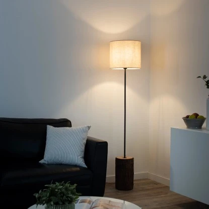 Die rustikale Stehleuchte aus der Serie Bark spendet nicht nur Licht sondern ist auch ausgeschaltet ein dekorativer Blickfang. Der beigefarbige Lampenschirm fügt sich in viele Einrichtungsstile gekonnt ein. Der Sockel der Lampe wurde mit einer natürlichen Holzrinde versehen. Die Leuchte wird ohne ein Leuchtmittel geliefert und kann mit einem E27-Leuchtmittel bis max. 40 Watt bestückt werden. So ist man sehr flexibel was die Helligkeit und die Lichtfarbwahl betrifft. Per Fußschalter kann man seine Tischlampe bequem an- und ausschalten. Platzieren Sie Ihren dekoratIven Hingucker in einem Ihrer Wohnräume.
