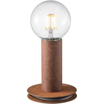 Die schlichte Tischleuchte Turn Me ist vielseitig einsetzbar. Die aus Stahl gefertigte Leuchte in der Farbe Rost wird ohne ein Leuchtmittel geliefert. Sie können die Leuchte mit einem E27 Leuchtmittel ganz nach Ihrem Geschmack bestücken. Einen besonderen Clou verleiht man der Leuchte mit der Verwendung eines Filament-Leuchtmittels.