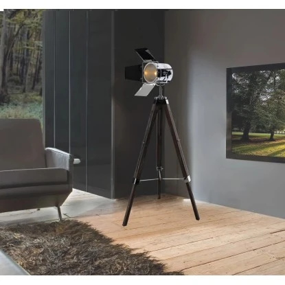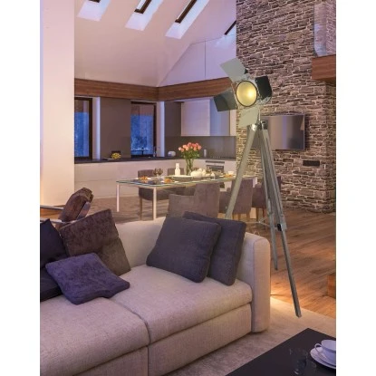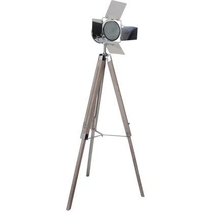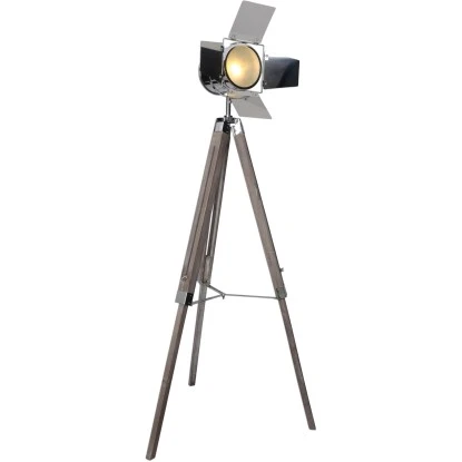 Holly ist ein dreibeiniges, stativförmiges walnussfarbiges Holzgestell, mit silbernem Scheinwerfer, der in seiner Halterung geschwenkt und gekippt werden kann. Die Leuchte hat einen Fußschalter. Die Gesamthöhe dieser Leuchte beträgt 100 – 140 cm und verleiht Ihrem Zuhause den Charme eines Filmsets in Hollywood. Bei dieser tollen Stehleuchte haben Sie die Wahl, ob Sie Ihren Wohnraum in einem warm- oder kaltweißen Licht erstrahlen lassen möchten, die Fassung hierfür ist E27 (Leuchtmittel nicht im Lieferumfang enthalten). Diese Leuchte ist „LED-Ready“, somit können Sie in diese Leuchte ein LED-Leuchtmittel einbauen. LEDs zeichnen sich besonderes durch ihre Langlebigkeit und den geringen Stromverbrauch aus.