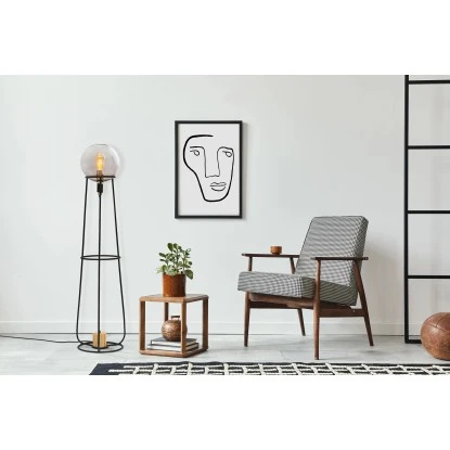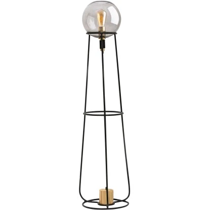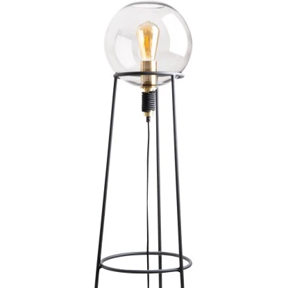 Die Näve Stehleuchte Stelo 128,5 cm in schwarzer Retro-Optik sorgt für einen rustikalen Touch in Ihrem Zuhause. Die Leuchte hat eine Höhe von 128,5 cm und einen Durchmesser von 31 cm. Besonders imposant ist die Glaskugel mit leicht verspiegelter Oberfläche. Das Leuchtmittel nimmt in der Mitte der Glaskugel Platz. Wenn die Leuchte eingeschaltet wird, entsteht durch den Lampenschirm und das Metallgestänge ein faszinierendes Zusammenspiel aus Licht und Schatten. Die Stehleuchte besitzt eine Fassung der Sockelgröße E27. Sie entscheiden, in welcher Lichtfarbe die Leuchte erstrahlen soll. Die Lampe weist die Schutzklasse IP20 auf.