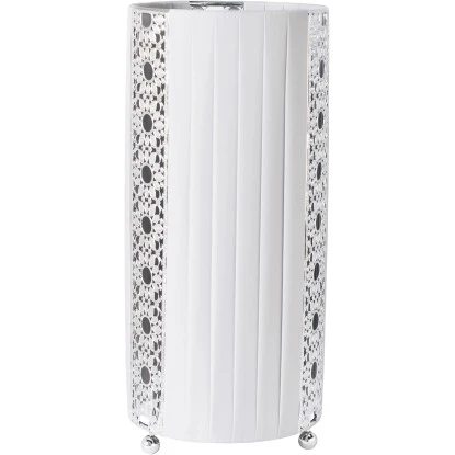 Die Stoff-Tischleuchte Dandy in Weiß ist modern und schlicht zugleich und verleiht Ihrem Zuhause einen Hauch von Orient. Durch die einfache aber dennoch hochwertige Verarbeitung ziert sie optimal den modernen Wohnraum und sorgt mit den eingearbeiteten zierlichen Blumenmustern für das gewisse Etwas in Ihren Räumen. Mit einer Höhe von 23 cm und einem Durchmesser von 12,5 cm ist sie nicht zu groß aber auch nicht zu klein um eine angenehme Lichtquelle in Ihrem Wohnraum zu schaffen. Ob die Lichtquelle warm- oder kaltweiß sein soll, entscheiden Sie, die Fassung der Leuchte ist E27.