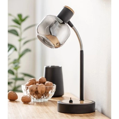 Die Näve Tischleuchte Fumoso 39 cm ist modern, zeitlos und immer im Trend. Ihre dunkel getönten Gläser machen die LED Tischleuchte zu einem echten Hingucker. Die Leuchte mit einer Höhe von 39 cm und einen Durchmesser von 12 cm. Sie fügt sich hervorragend in jeden Wohnraum ein. Das schlichte Design und die neutrale Farbgebung in Schwarz/Natur bieten zahlreiche Einsatz- und Kombinationsmöglichkeiten. Die Tischleuchte besitzt eine Fassung der Sockelgröße E14. Sie entscheiden, in welcher Lichtfarbe die Leuchte erstrahlen soll. Die Lampe weist die Schutzklasse IP20 auf.