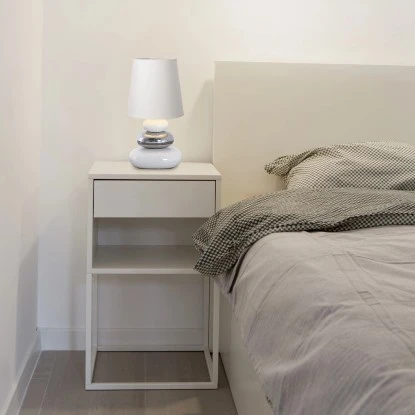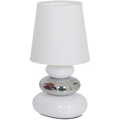 Die Kombination aus Keramik und Textil schafft ein gemütliches und wohnliches Ambiente. Die Tischlampe von Näve Stoney wird damit auch im ausgeschalteten Zustand zum Dekorationselement. Die Leuchte hat eine Höhe von 31 cm und einen Durchmesser von 16 cm. In der Zuleitung ist ein Kippschalter installiert, mit dem sich die Leuchte bequem ein- und ausschalten lässt. Die Tischlampe von Näve besitzt eine Fassung der Sockelgröße E14. Sie entscheiden, in welcher Lichtfarbe die Leuchte erstrahlen soll.