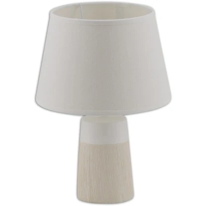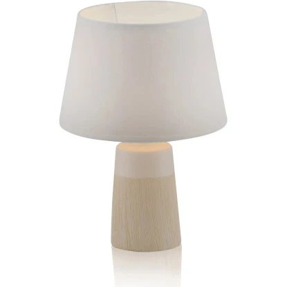 Die Tischleuchte Sullivan zeichnet sich besonders durch das tolle Zusammenspiel von Textil und Keramik in Holzoptik aus. Sie passt perfekt zu einer modernen- oder natürlich auch zu einer rustikalen Einrichtung und sorgt immer für einen Hingucker. Der Schirm dieser schönen Keramik Tischleuchte ist aus weißem Textil. Des Weiteren hat diese stilsichere Leuchte einen Ein- und Ausschalter in Form eines Kippschalters.