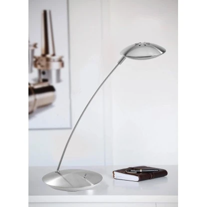 Mit dieser Tischleuchte aus der Serie Tebutt setzen Sie Ihren Wohnraum energieeffizient und effektvoll in Szene. Das moderne Design entsteht durch die hochwertige Stahloptik und den Lampenschirm in UFO-Form. Mit dem praktischen Kippschalter lässt sich die Lampe direkt am Gehäuse ein- und ausschalten. Betrieben wird diese Leuchte mit innovativer LED-Technik.