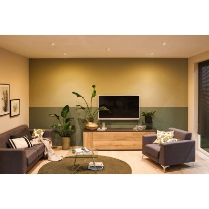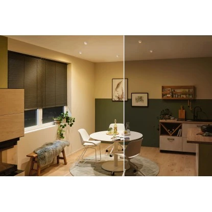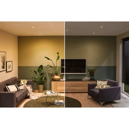 Die dekorativen Einbauleuchten Gil im 3er-Set in der Farbe Weiß matt, Gold sorgen mit ihrem zweifarbigen Design für Lichthighlights und setzen blendfreie Akzente an der Decke. Durch den hervorstehenden Dekozylinder wird eine geringere Einbautiefe im Vergleich zu den zurückgesetzten Lichtpunkten benötigt. Hat man sie entdeckt, möchte man gar nicht mehr wegschauen. Die Strahler punkten mit brillanter Technik: Die wechselbaren LED Coins liefern angenehm warmweißes Licht, lassen sich mit einem herkömmlichen Lichtschalter in drei Stufen dimmen und sind untereinander unendlich verkettbar. Sie benötigen einen Bohrdurchmesser von 62 mm.