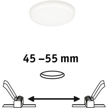 Das rahmenlose Veluna LED-Panel hat einen Durchmesser von 75 mm und sorgt mit einer Leistung von 4,5 Watt für flächiges neutralweißes Licht. Dank flexibler VariFit-Technik lassen sich die Klemmfedern für den Einbau stufenlos zwischen 45 mm und 190 mm einstellen. Damit kann das Panel sowohl in bereits vorhandene als auch in neue Bohrlöcher (mit Standard Bohrkrone) eingebaut werden.