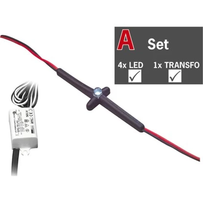 Werten Sie Ihren Fußboden und Ihre Wände mit moderner LED Technik auf. Dank der speziellen Trägerkonstruktion der LED Crosslight Fliesenkreuzleuchten passt sich das Kleinst-Leuchtmittel sicher zwischen 2 Fliesen ein. Kabel und Führungsmaterial verschwinden unsichtbar unter dem Fugenputz. Die Leuchten eignen sich ideal auch für den Einsatz in Feuchträumen und Außenbereichen (IP67) und können auch nachträglich eingebaut werden. Zudem machen 10000 h Lebensdauer jegliche Wartung oder Lampenwechsel überflüssig. Durch praktische Erweiterungssets können bis zu 12 Lampen hinter einem einzigen Trafo verkettet werden.Das Basis Set aus Kunststoff in Weiß und besteht aus 4 Leuchten. Es ist mit 4 LEDs mit jeweils 0,275 W ausgestattet und leuchtet in Tageslichtweiß mit einer Lichtfarbe von 8000K. Im Lieferumfang sind neben 4 LEDs der Steckverbinder und 1 Transformator 3,6 VA inklusive.
