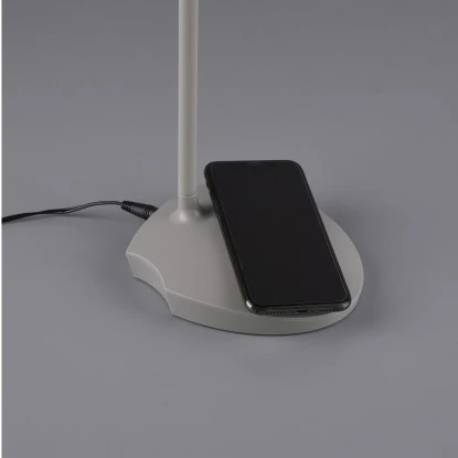 Die moderne Tischleuchte Load zeichnet sich durch zeitloses Design und ihre Benutzerfreundlichkeit aus. Unterstützt wird das Erscheinungsbild durch den integrierten 4-fach Touchdimmer, welcher vier Schaltstufen besitzt. Mit den ersten drei Schaltvorgängen kann die Helligkeitsstufe angepasst werden und beim vierten Schaltvorgang wird die Leuchte ausgeschaltet. So eignet sich die Tischleuchte ausgezeichnet als moderne Beleuchtung auf dem kleinen Beistelltisch oder auf der Kommode. Durch den flexibel verstellbaren Leuchtenkopf ist die Leuchte ideal als Schreibtischbeleuchtung einsetzbar. Als Zusatzfunktion verfügt die Leuchte über eine induktive Ladestation. So können entsprechend geeignete Smartphones problemlos durch einfaches auflegen des Gerätes geladen werden. Die Tischleuchte ist in der Farbe Grau designt und kann damit moderne Farbkonzepte stilvoll ergänzen.