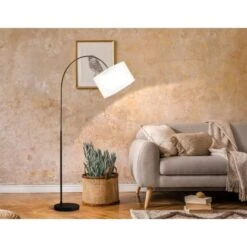 Fischer & Honsel Stehleuchte Thor 3-flammig Schwarz/Weiß Leinen