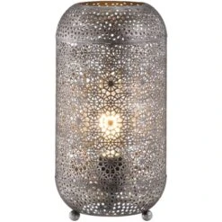 Fischer & Honsel Tischleuchte Velvet Silberfarben Antik Groß Ø 25 Cm