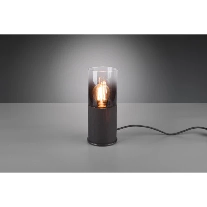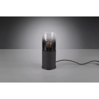 Die Tischleuchte hat eine Höhe von 25,5 cm und einen Durchmesser von 11 cm. Dank der Farbgestaltung in Schwarz matt, mit dem rauchfarbigen Glas, kann die Leuchte mit vielen Einrichtungsstilen kombiniert werden.